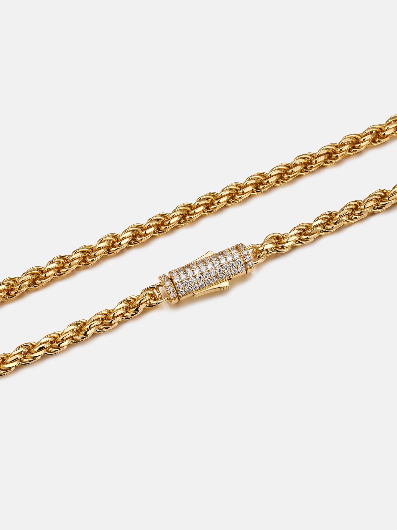 This 5mm rope chain offers a modern twist on traditional twist chains with a unique moissanite clasp that adds an extra layer of texture and elegance. Its simple, generous design and brilliant shine will make you stand out with everyday wear.