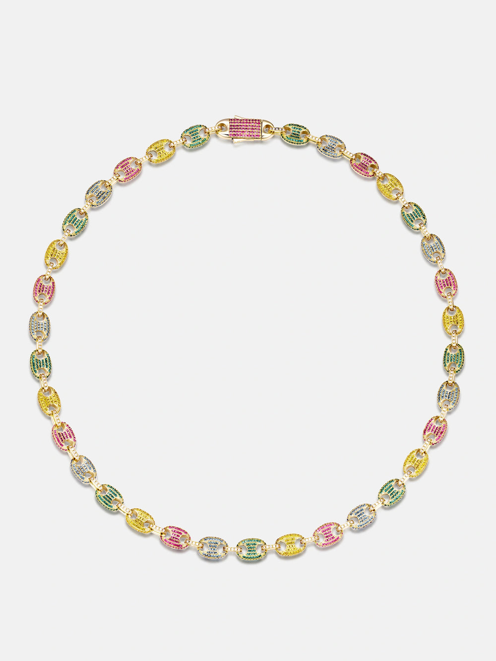 10MM S925 Moissanite Colored Gem G-Link Chain