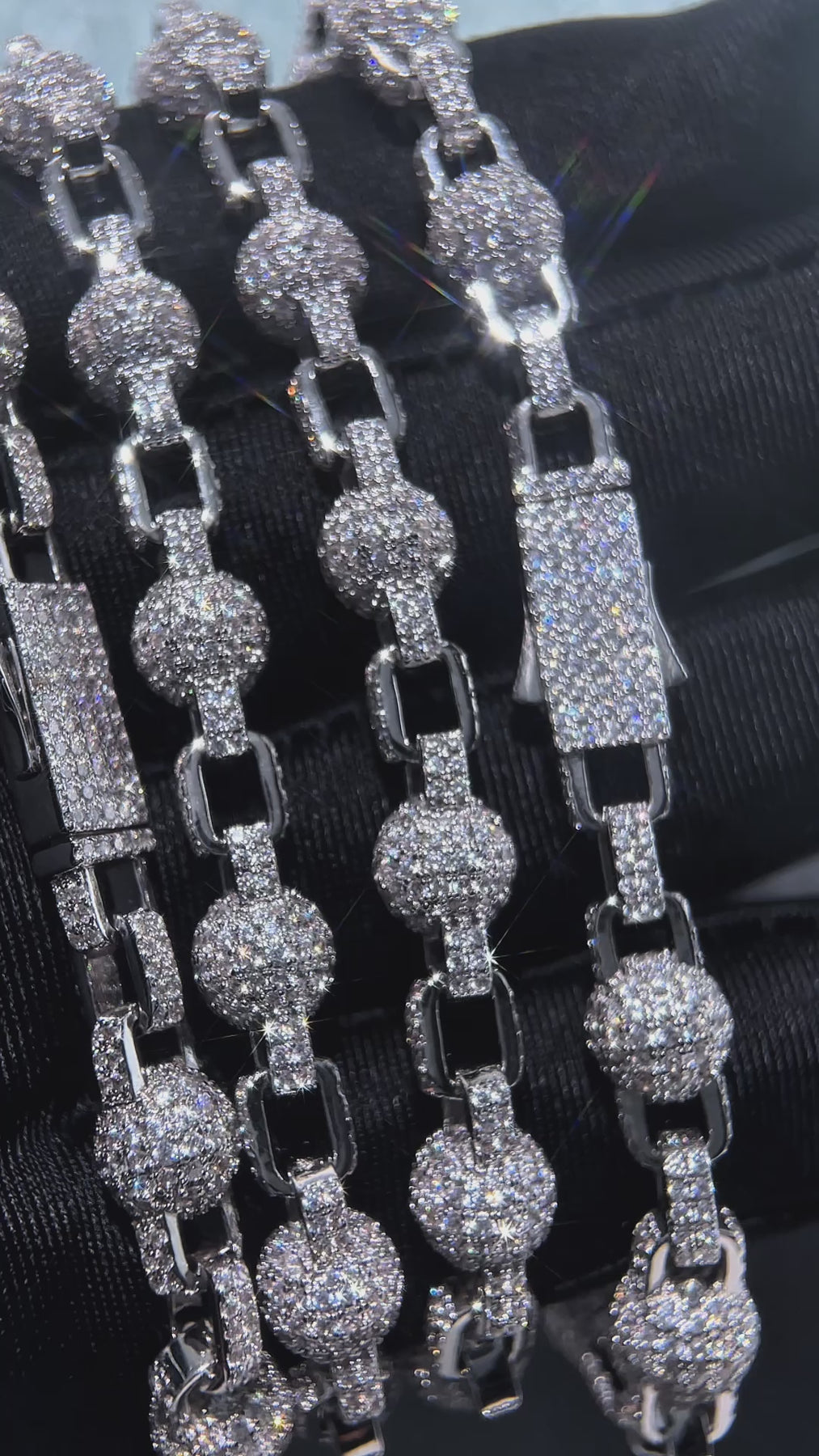 7mm Iced Out Moissanite Round Ball Rolo Chain Or Bracelet