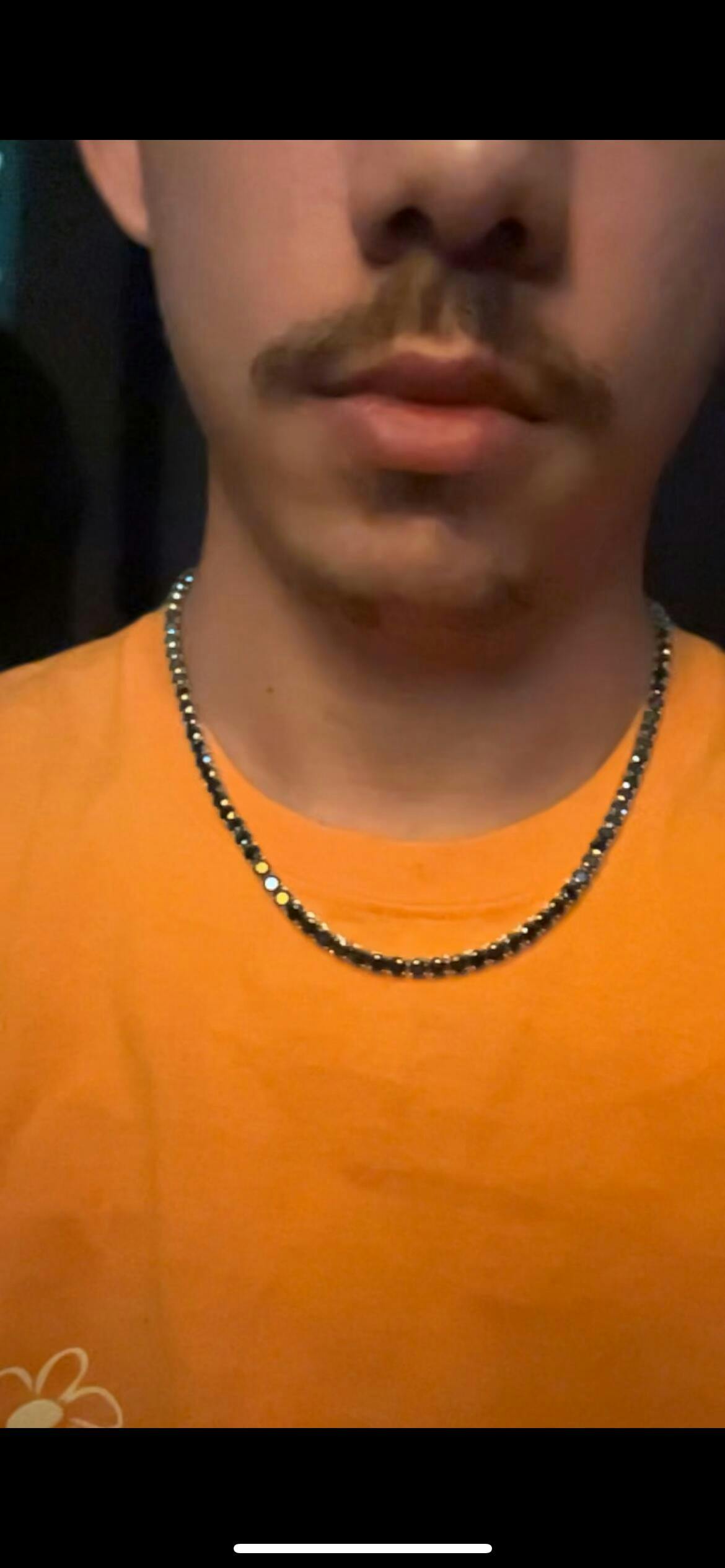 This rare black moissanite tennis chain is crafted from premium black moissanite and masterfully linked to create a unique and elegant accessory. Boasting a soft texture and radiant hue, this timeless piece captures the perfect balance of modern sophistication and classic luxury. Its unique molecular structure provides extra durability, ensuring the chain lasts for generations.