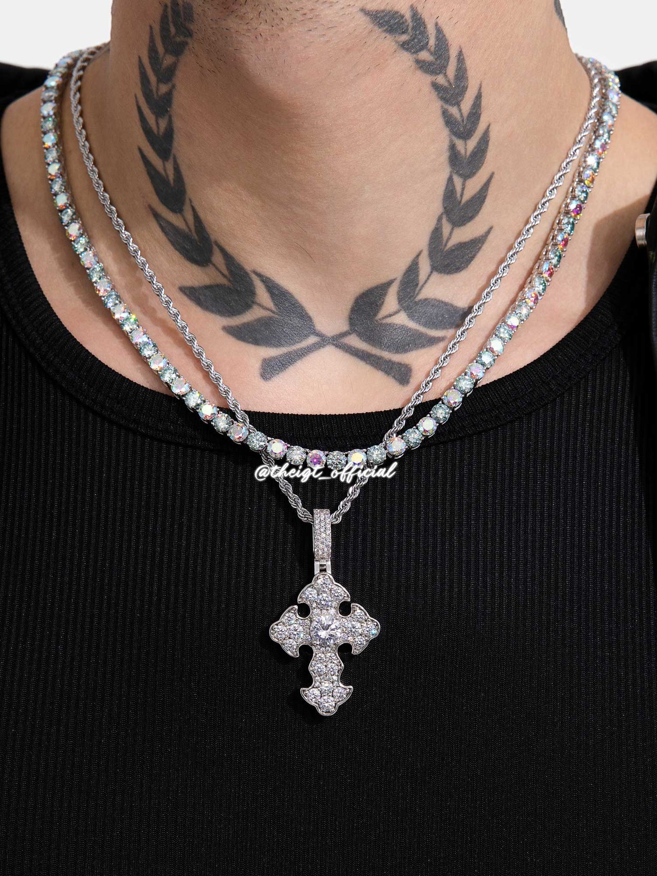 The Mosaic Iced Petal Cross is a fusion of architectural precision and high-street brilliance. While standard pendants settle for basic pavé, we’ve pushed the limits of craftsmanship with our signature Mosaic Setting—aligning every stone with micro-precision to create a continuous, "liquid" shimmer that never sleeps.