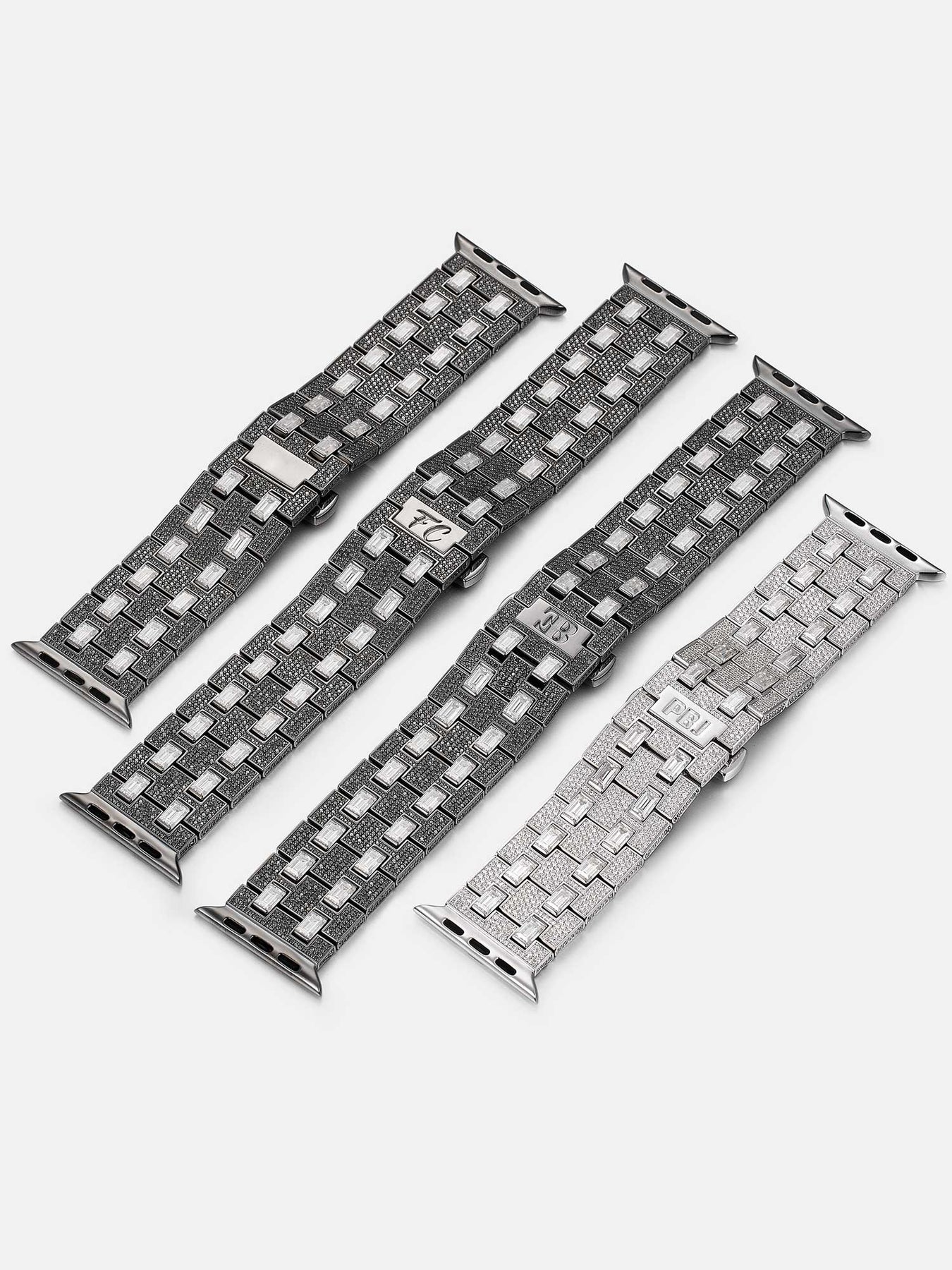 Designed for the 46mm Series 10 Apple Watch, this band elegantly blends emerald and round-cut moissanite stones. The harmonious fusion of these cuts creates a refined sparkle that enhances your watch with a touch of sophisticated luxury, perfect for those who appreciate timeless elegance. Fully customizable with your choice of name engraving and color options.