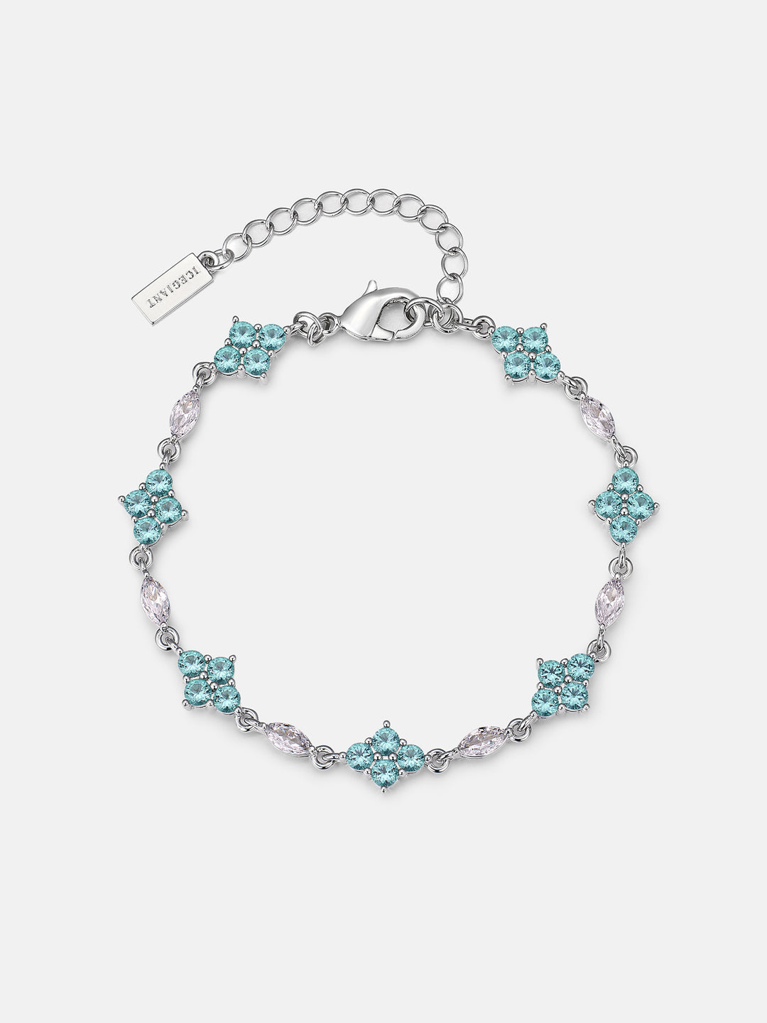 Blue & White Moissanite Four Leaf Clover Bracelet
