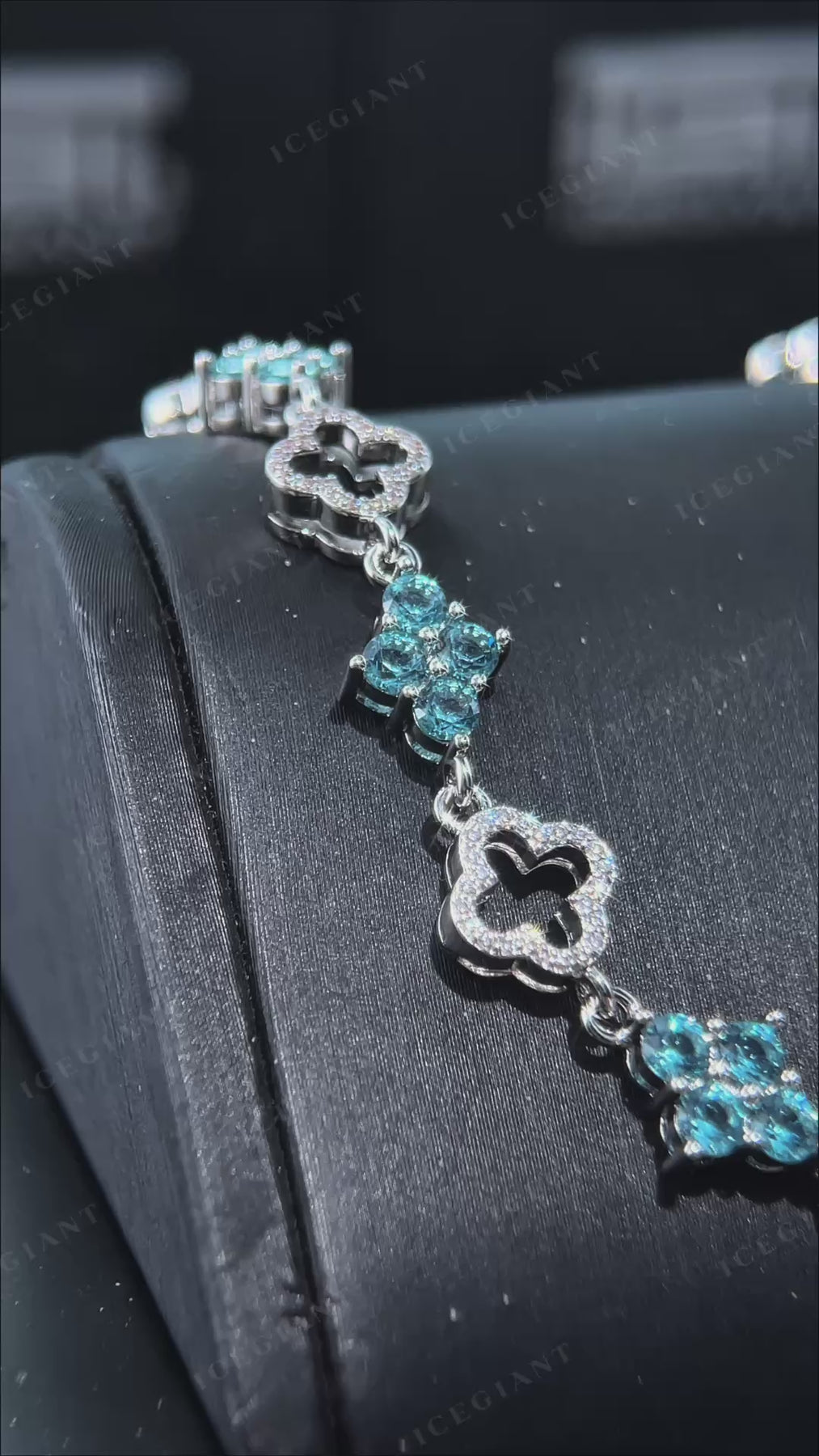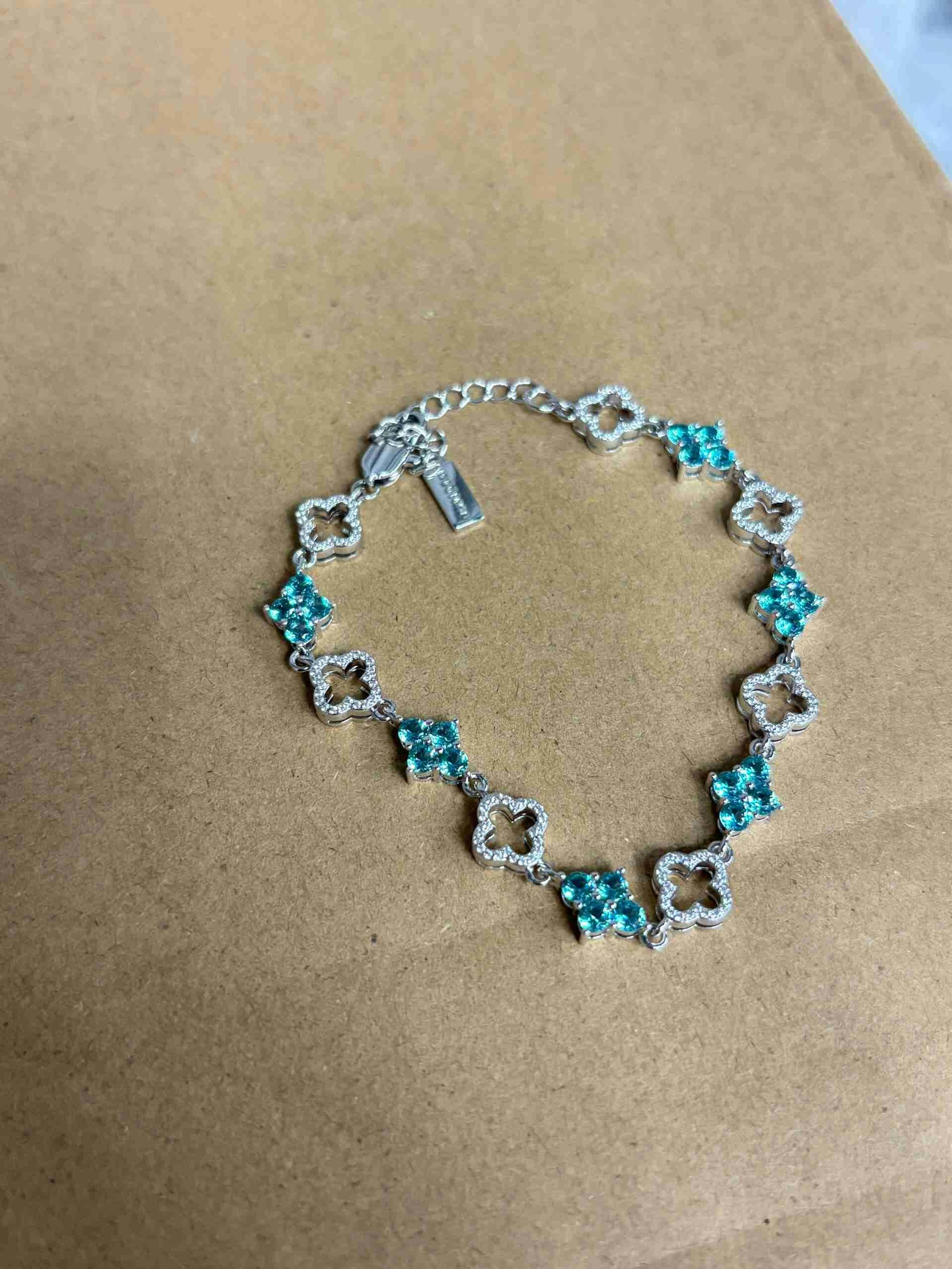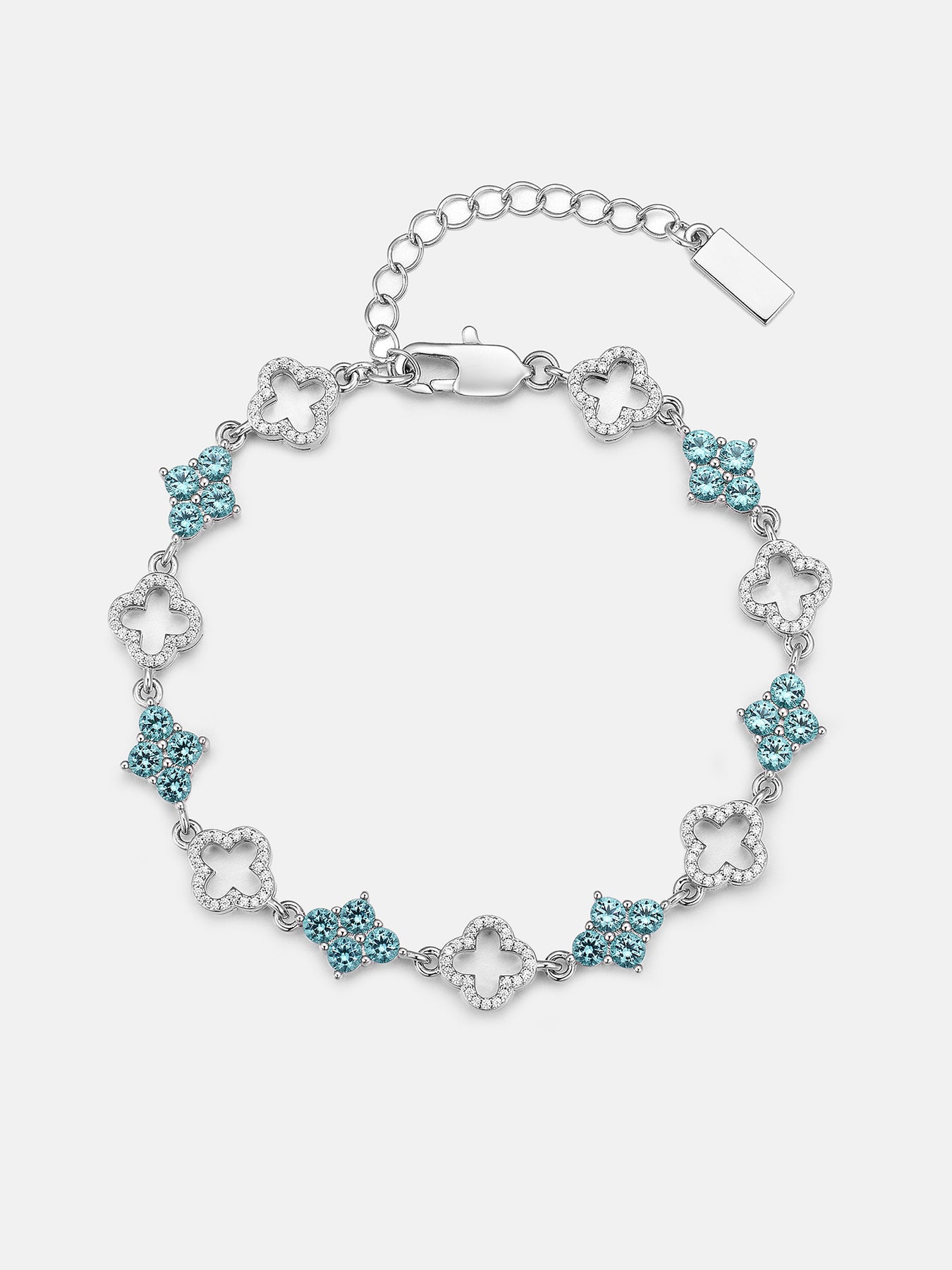 Blue & White Moissanite Four Leaf Clover Bracelet