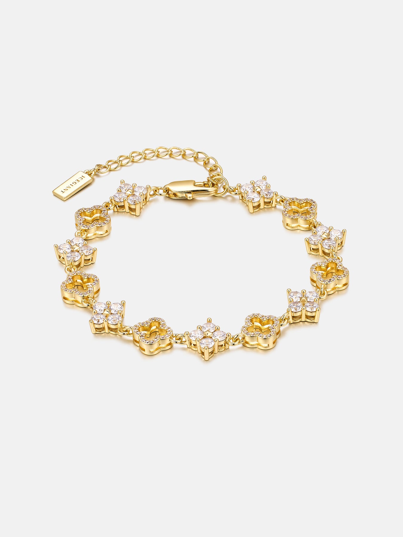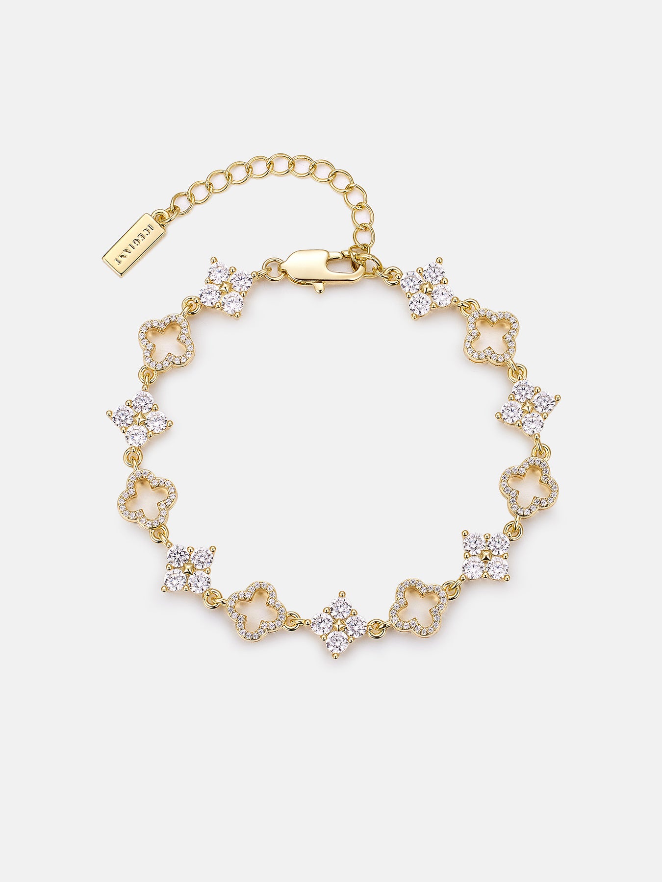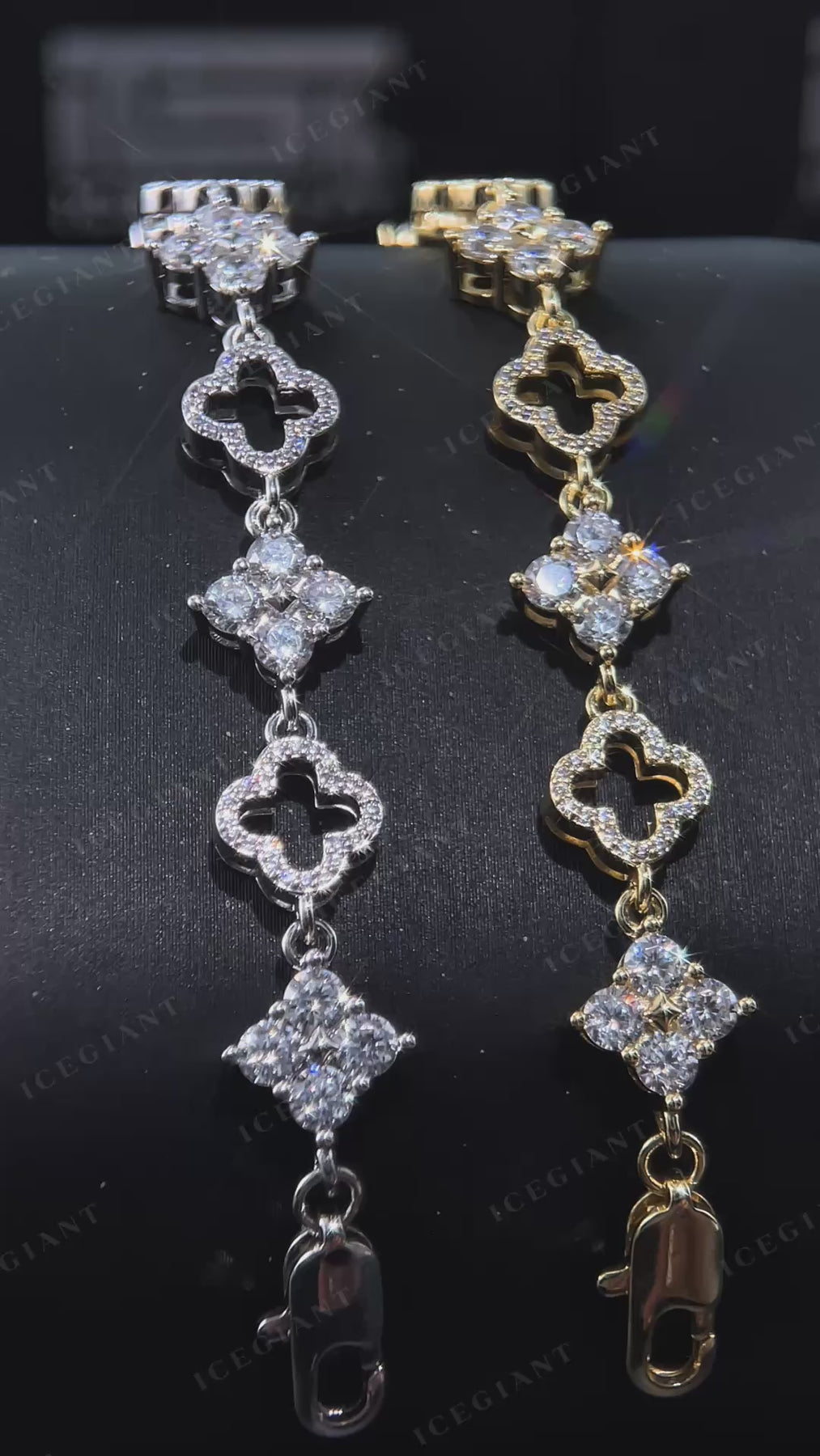 Discover the perfect blend of two elegant four leaf clover designs in this stunning moissanite bracelet. Each clover sparkles with brilliant moissanite stones that capture light beautifully, symbolizing double the luck and fortune. Crafted with precision and elegance, this piece is ideal for those who appreciate meaningful jewelry with timeless appeal.