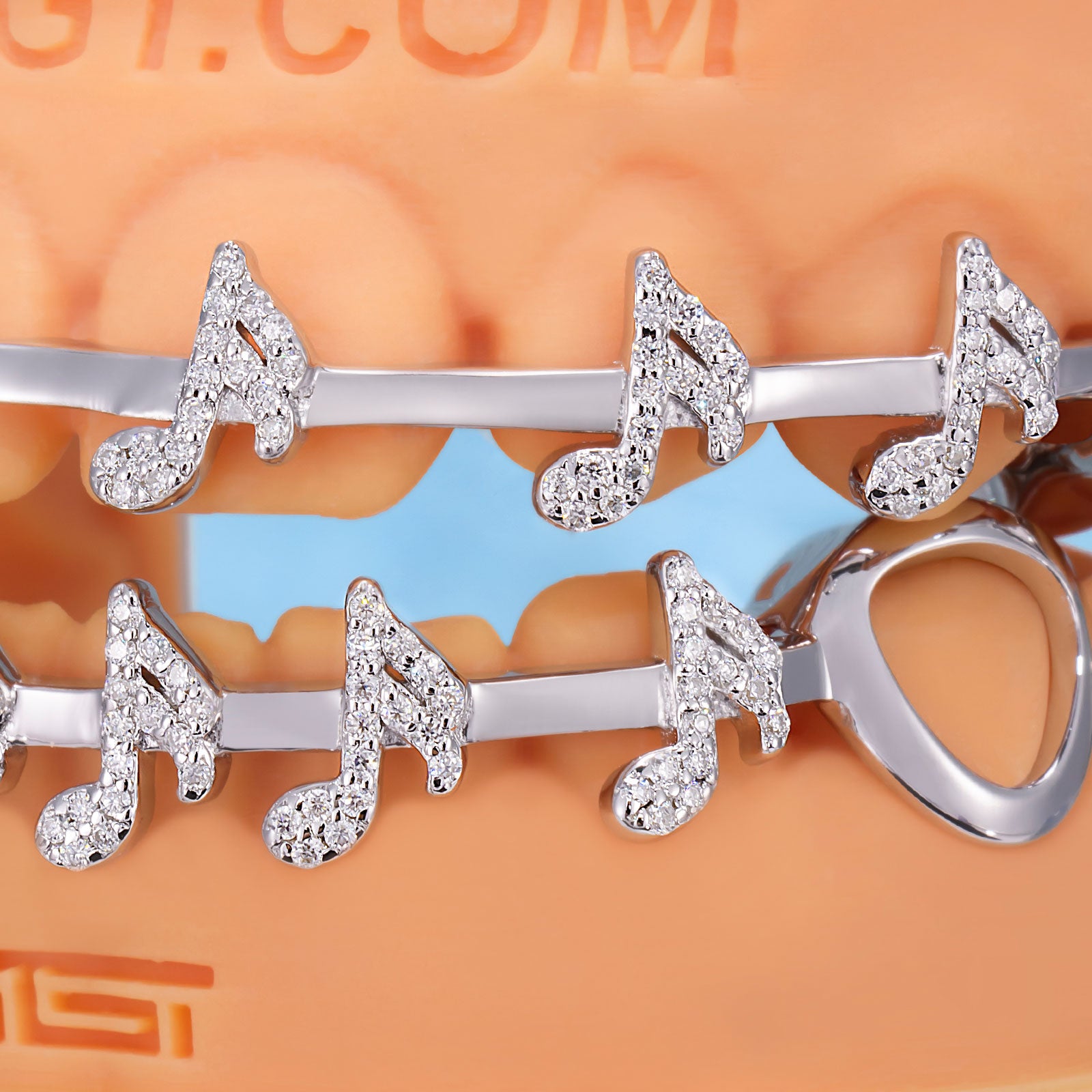 The Music Note Brace Grillz brings rhythm to life on your wrist. Featuring dancing musical notes adorned with sparkling stones, this piece celebrates your passion for music and artistic expression. Perfect for music lovers and trendsetters, it transforms your style into a symphony of elegance and individuality. Let the beat shine through.
