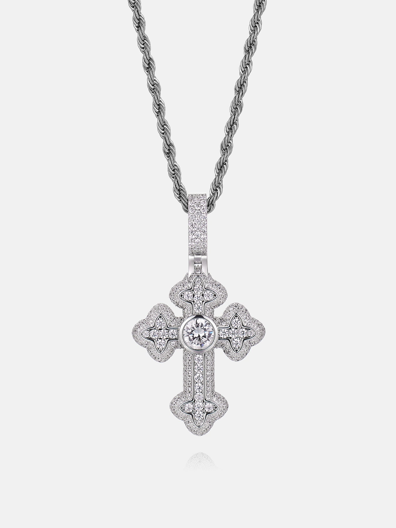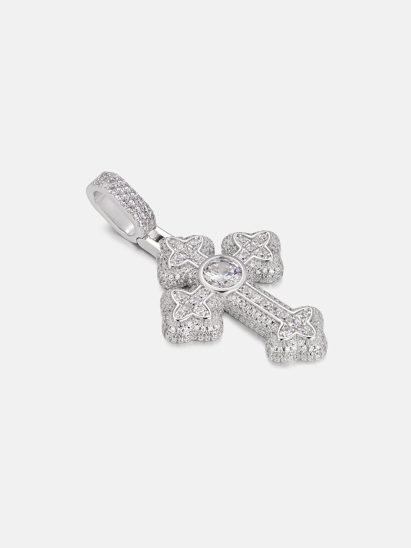2ct Round Centre Moissanite Flower Cross Pendant