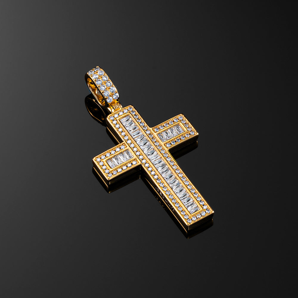 Exclusive iGT original design - Baguette Cross Pendant combines two cut stones, Baguette and Round, with a sealed back. More unique and shining.