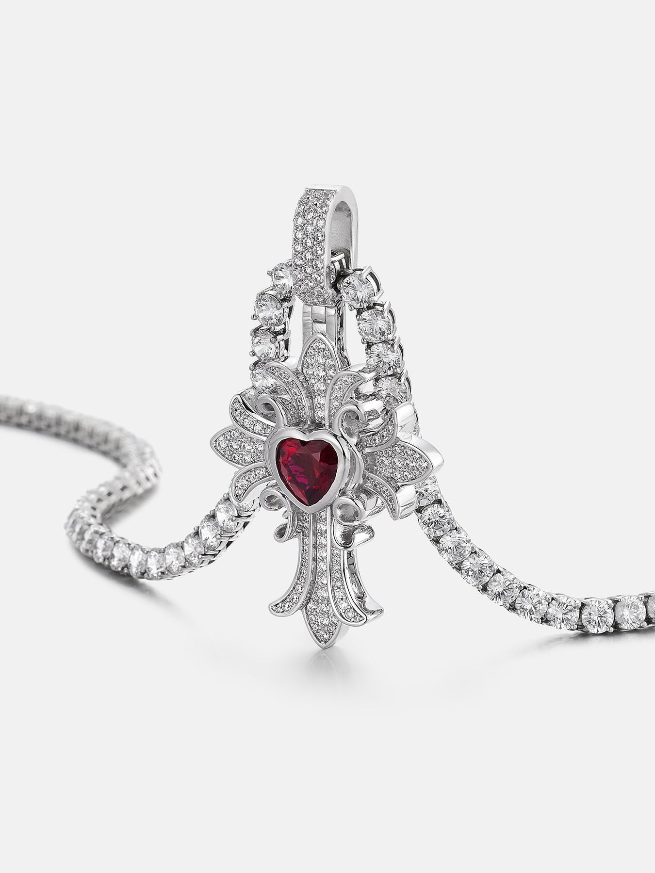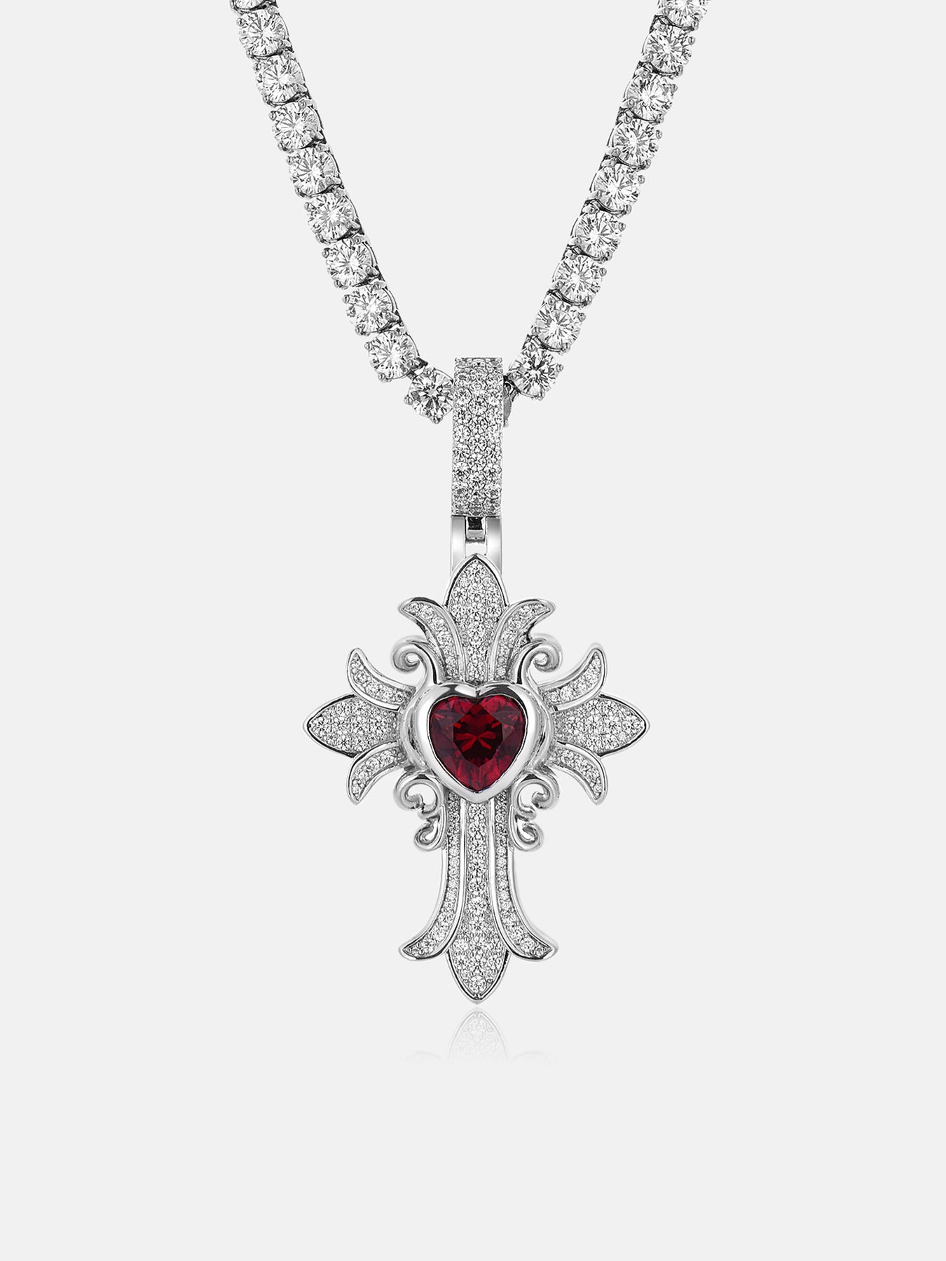 The Crimson Heart Fleur Moissanite Cross Pendant combines spiritual significance with luxurious sparkle. This exquisite piece features a brilliant moissanite stone nestled in an ornate fleur design, accented with rich crimson tones. Durable and radiant, it's the perfect everyday statement or meaningful gift for those who value both faith and elegance.