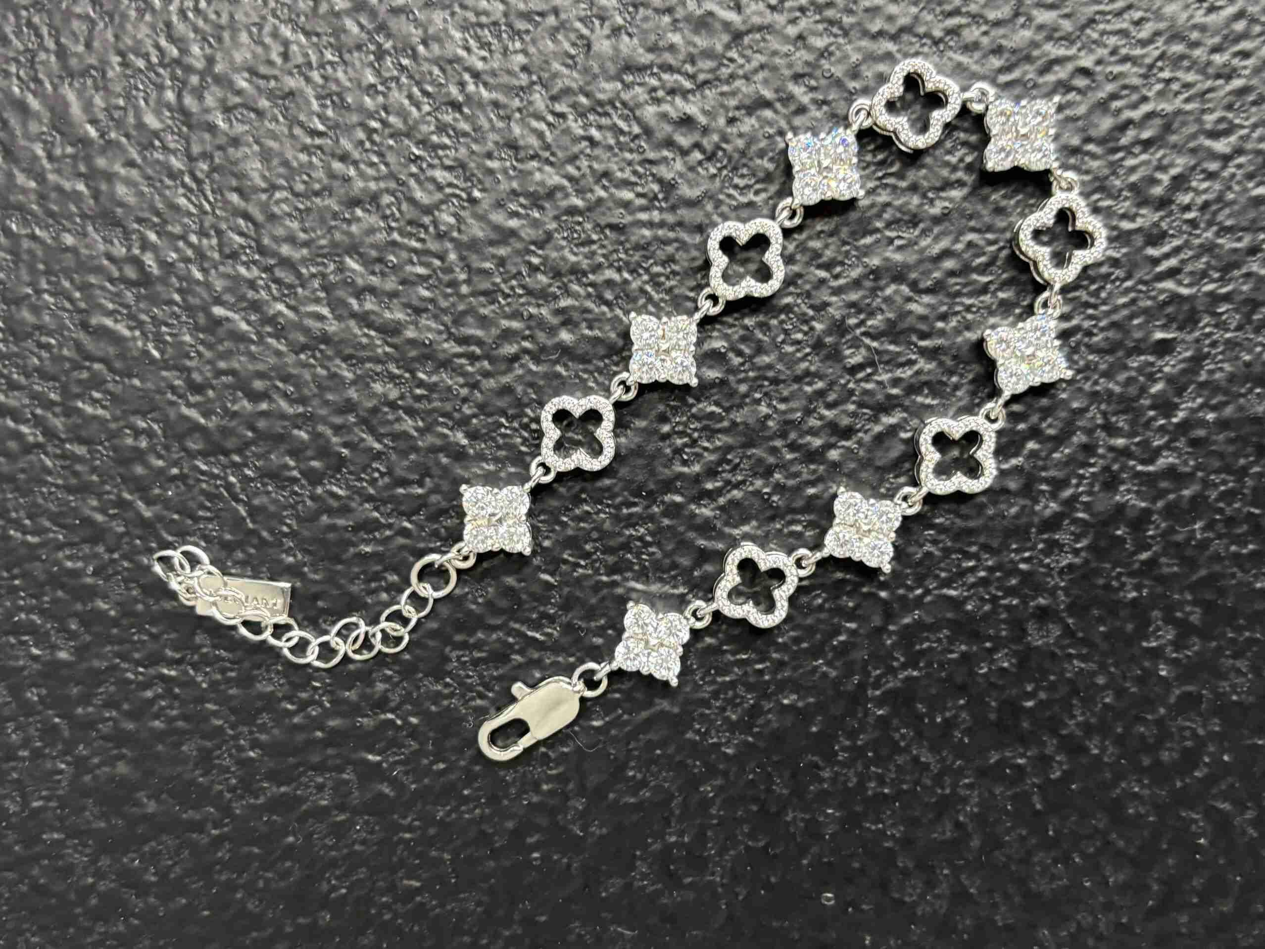 Discover the perfect blend of two elegant four leaf clover designs in this stunning moissanite bracelet. Each clover sparkles with brilliant moissanite stones that capture light beautifully, symbolizing double the luck and fortune. Crafted with precision and elegance, this piece is ideal for those who appreciate meaningful jewelry with timeless appeal.