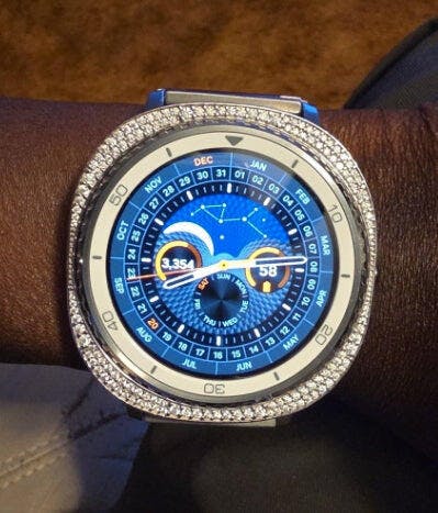 Give your Galaxy Watch 8 Classic the superstar treatment. This stunning 46mm Moissanite Bezel Case Cover is engineered to turn heads, instantly transforming your tech into a luxurious jewel. The ultimate Bling Watch Case, it's meticulously hand-set with brilliant Moissanite stones for unparalleled shine and quality. Crafted for a precision fit, this cover delivers the high-profile, iced-out aesthetic that defines modern urban style.