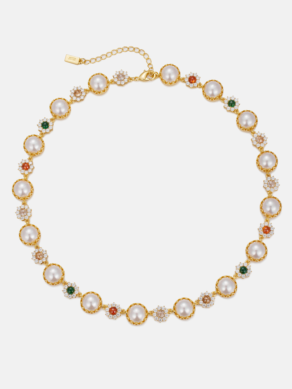 Illuminate your style with the Colored Gem White Moissanite Daisy Pearl Chain. This delicate design blends sparkling moissanite gems with soft pearls in a charming daisy motif, delivering sophisticated shimmer that enhances any look effortlessly. Perfect for making every moment memorable.