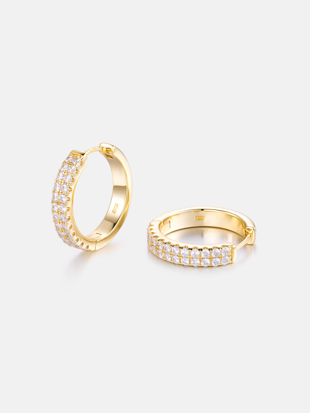 Double Row Moissanite Hoop Earrings With 14k Solid Gold Post