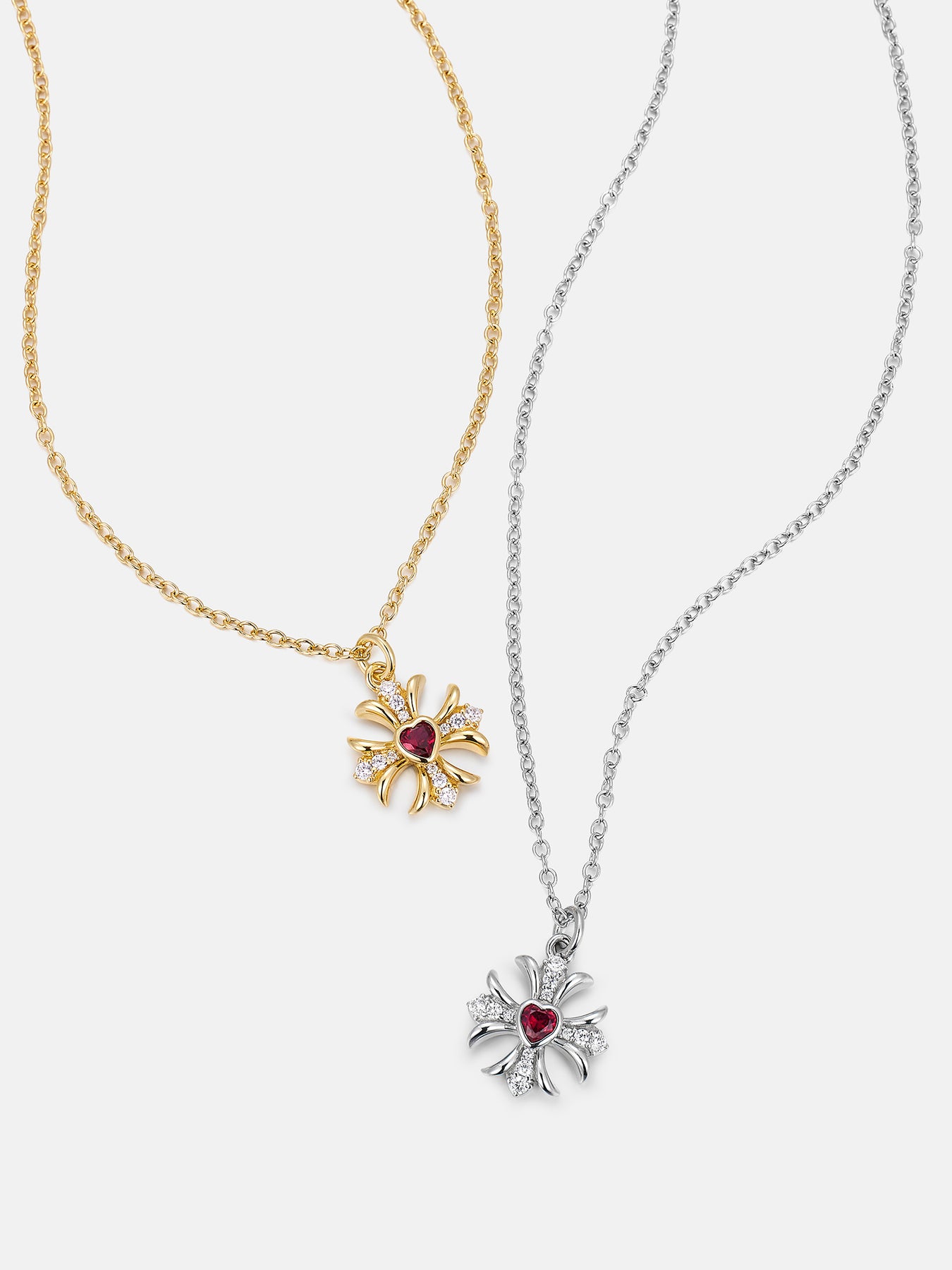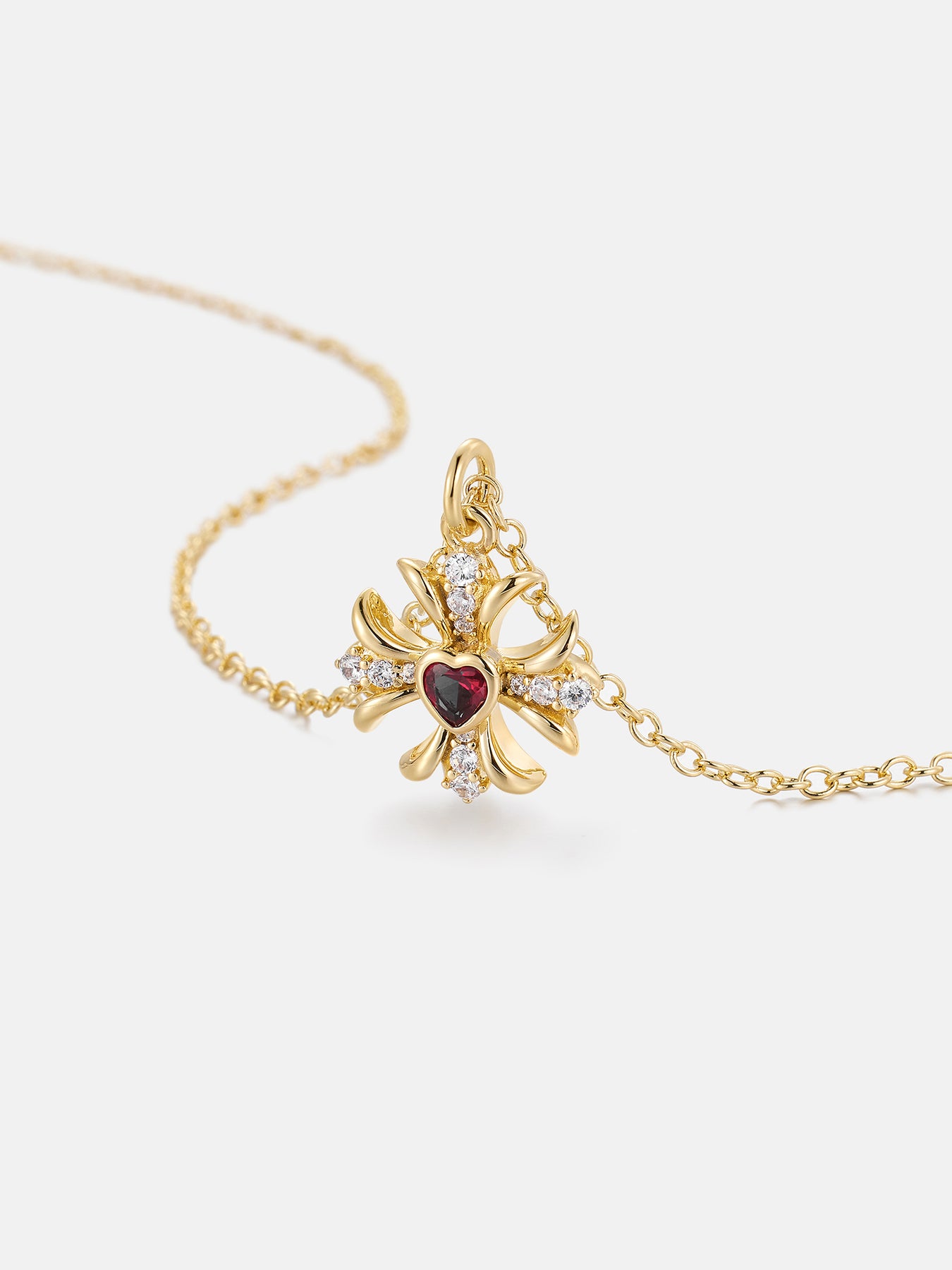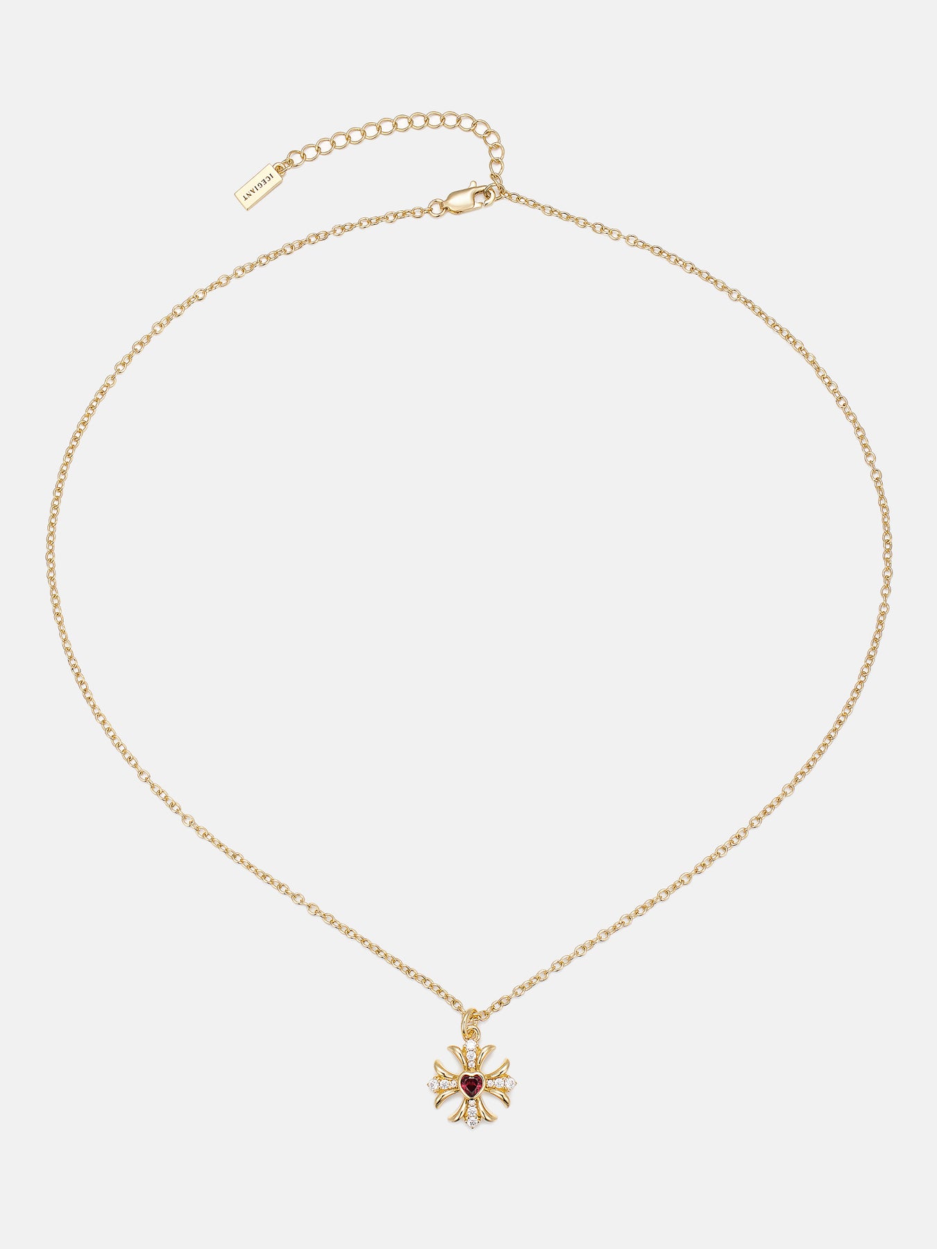 A stunning pendant featuring a radiant pink heart gemstone at its center, surrounded by brilliant white moissanite stones arranged in a graceful cross design. This elegant piece combines romantic symbolism with timeless sophistication, perfect for meaningful moments and everyday elegance.