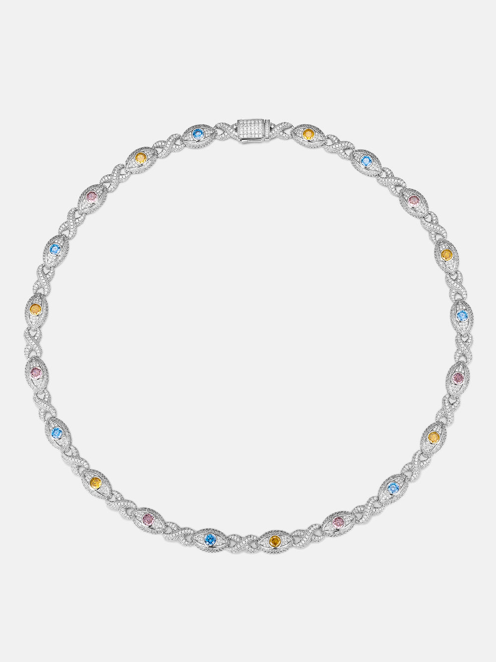 S925 Moissanite Multi Gemstone Evil Eye Eternity Chain
