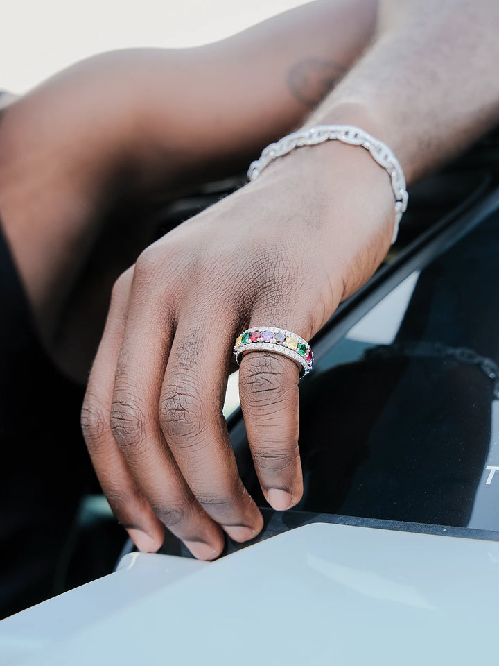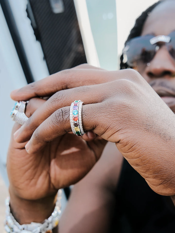 Take your style to the next level with our S925 Moissanite Multi Gemstone Rotatable ring! This bold and daring accessory features the iCEGIANT effect, adding a touch of sparkle and glamour to any outfit. Embrace the thrill of the unknown and make a statement with this must-have piece.