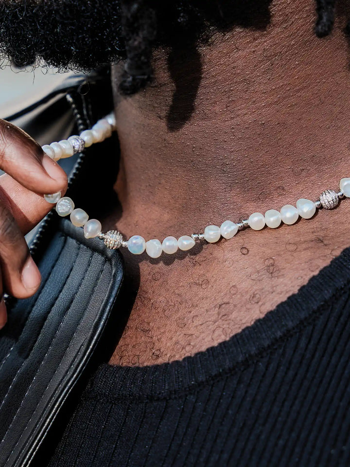 The S925 Pearl Moissanite Beaded Chain is crafted with iCEGIANT for a sophisticated look. Irregular pearls, like you and me, coalesce in this one-of-a-kind piece to show off your unique style. Treat yourself to this refined and luxurious accessory!