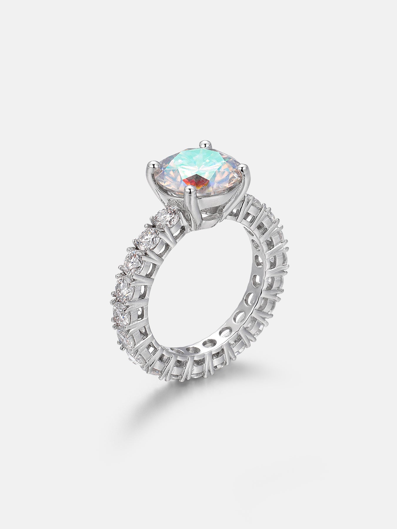 Elevate your commitment with the 4CT Rainbow Moissanite Engagement Ring, showcasing a stunning 4-carat rainbow-hued moissanite that captures light from every angle. This ring combines exceptional brilliance and vibrant colors, offering a unique alternative to traditional diamonds. Its radiant sparkle and durable design make it perfect for everyday wear, symbolizing your love with both beauty and strength. Celebrate your special moment with a ring that truly stands out.