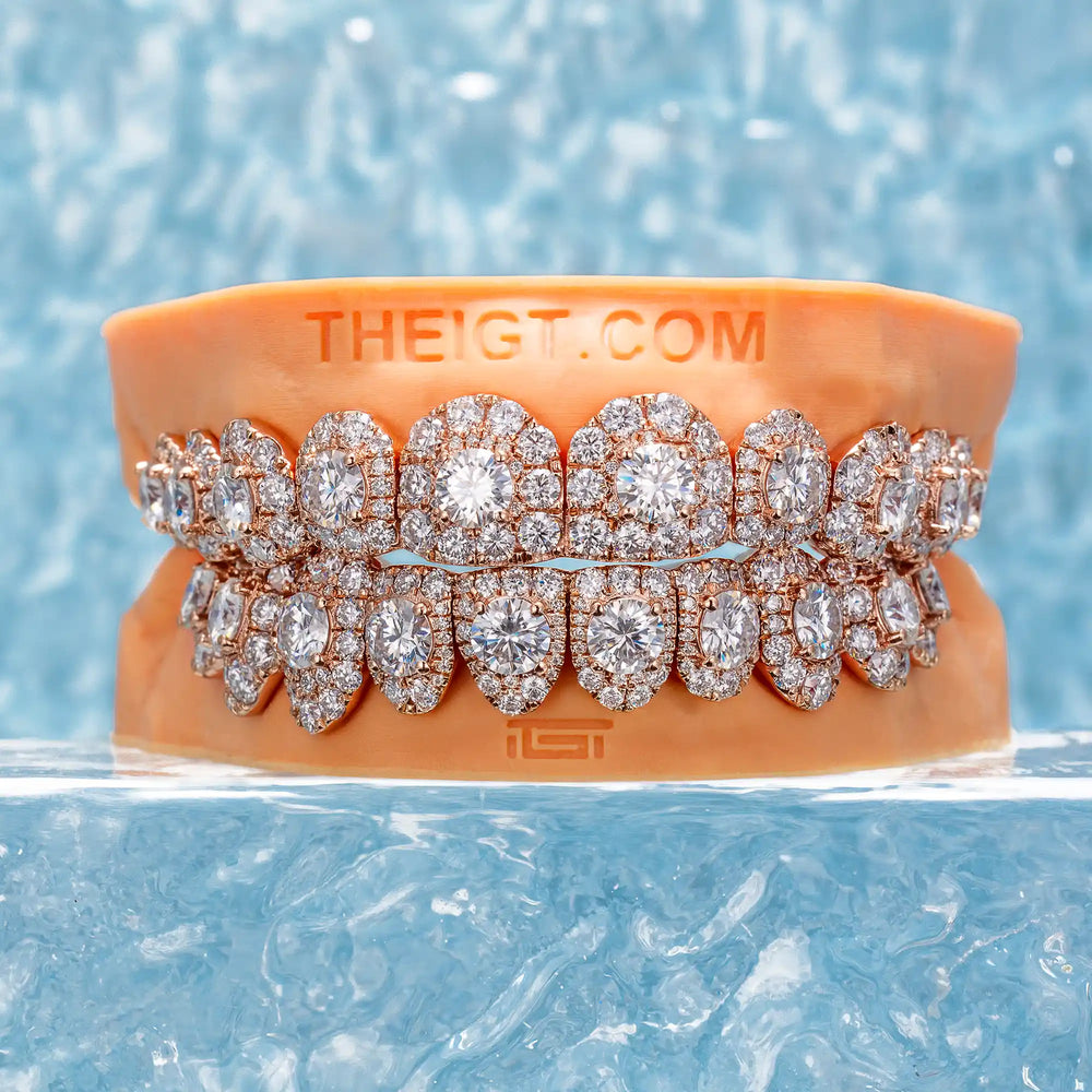 Elevate your style with our 50 pointer stone center moissanite diamond grillz. Made with high-quality moissanite, this custom-fit grillz will get you noticed everywhere. Using a pave set and prong set to combine the Jumbo with a 50 pointer main stone, allowing the grillz to showcase their perfect shine. Perfectly weighted for the perfect fit, these grillz are the ultimate in luxury jewelry. Make a statement and turn heads with our premium grillz.