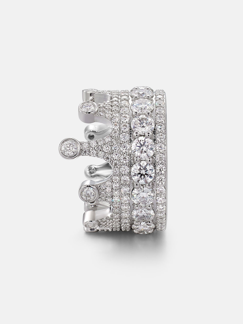 Add a sparkling twist to your style with the Iced Out Moissanite Crown Ring. This dazzling piece features brilliant moissanite stones that catch every eye, crowned with a playful design fit for royalty. Perfect for those who love a little sparkle and a lot of personality on their fingers!