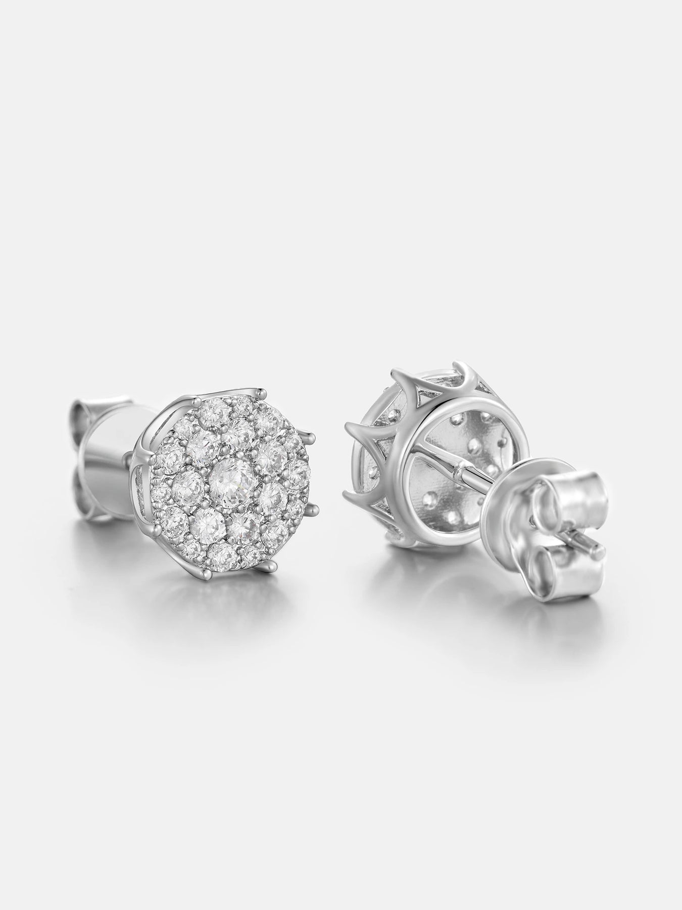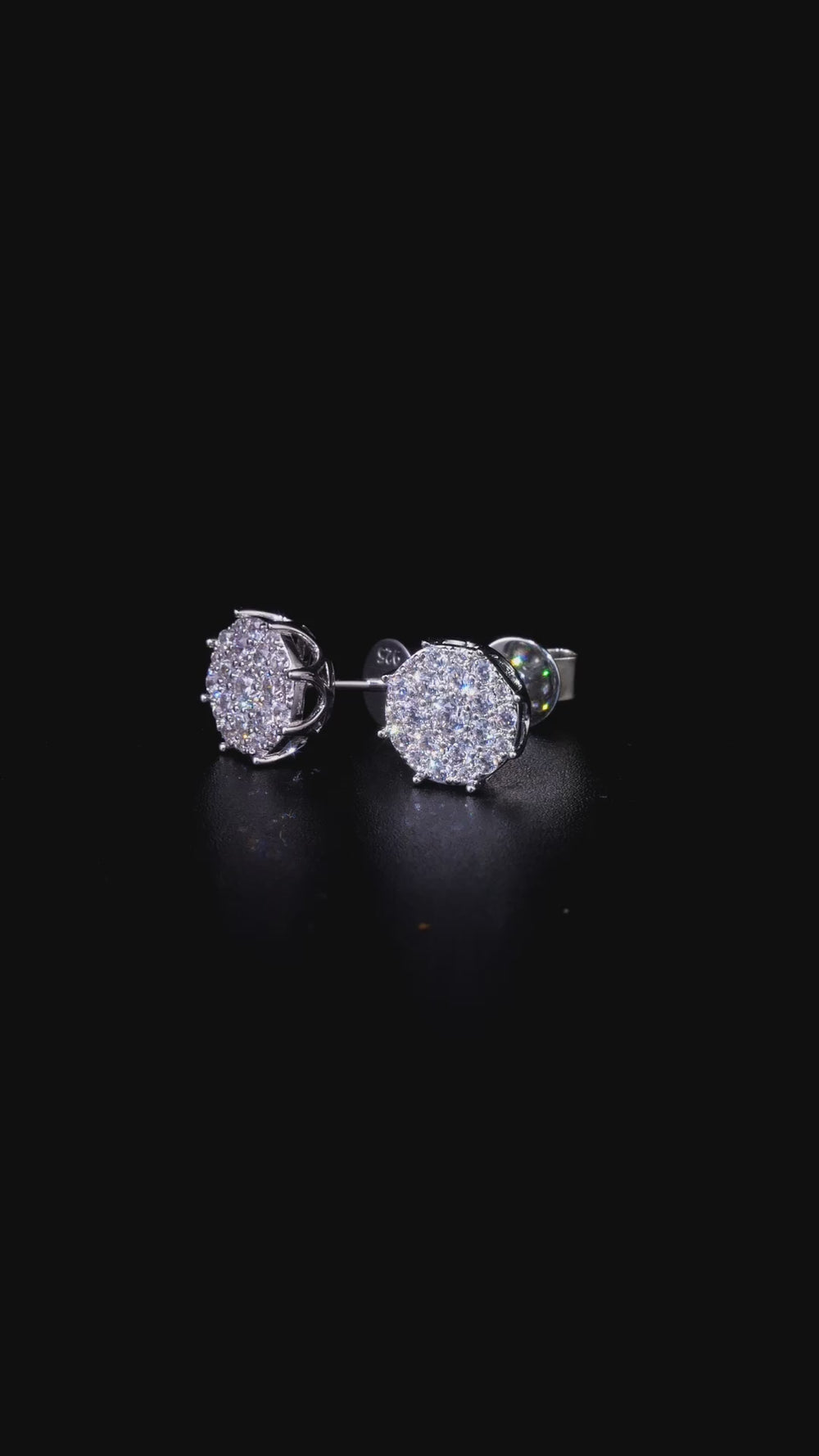 Add a touch of glamour to your look with our Full Paved Moissanite Cluster Earrings. Crafted with precision, these iCEGIANT earrings offer a stunning sparkly effect. Designed to shine bright, they are versatile enough to elevate any outfit. Treat yourself or your loved ones to these elegant and timeless earrings.