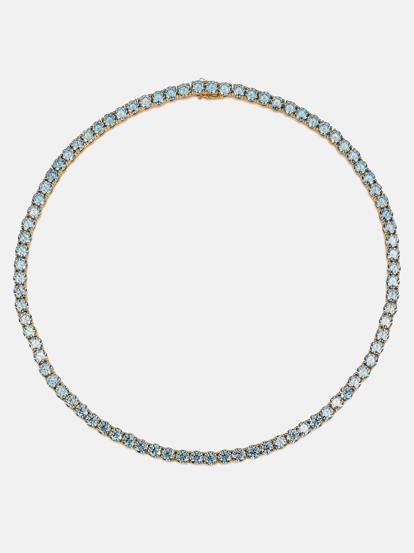This Rare Blue Moissanite Tennis Chain is the perfect way to show off your unique style! The tiffany blue moissanite stones are sure to add a touch of color and sparkle to your outfit. With years of craftsmanship experience and the use of only the best materials, you'll love wearing this chain and knowing that it will stand the test of time.