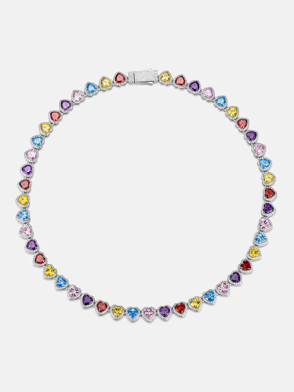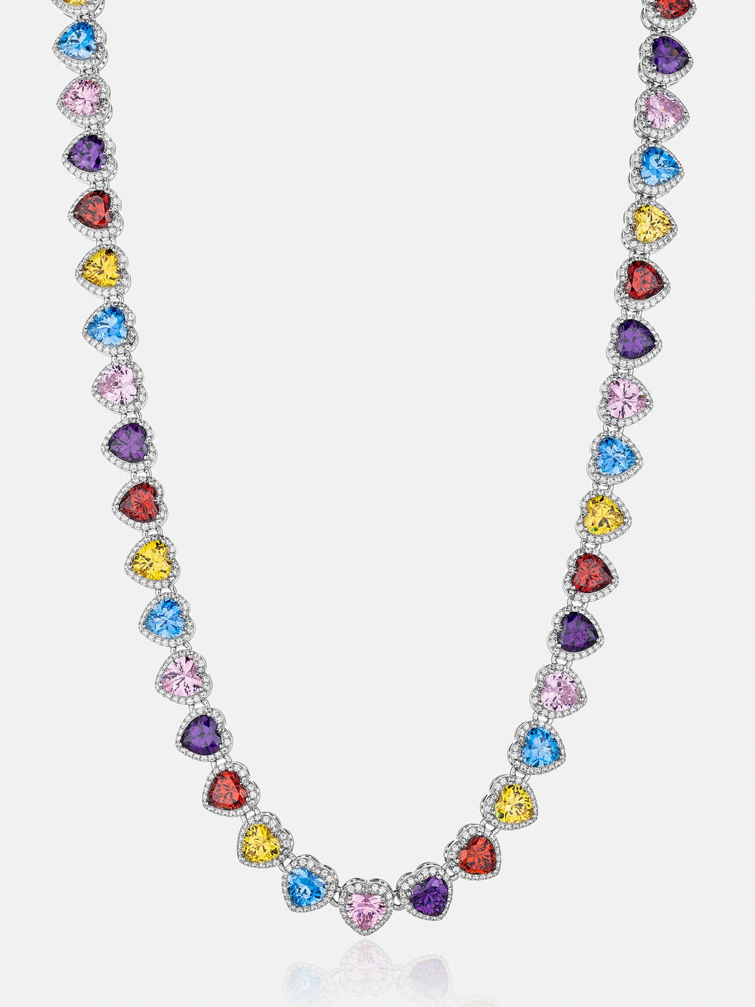 10mm Multi Gemstone & White Moissanite Heart Necklace