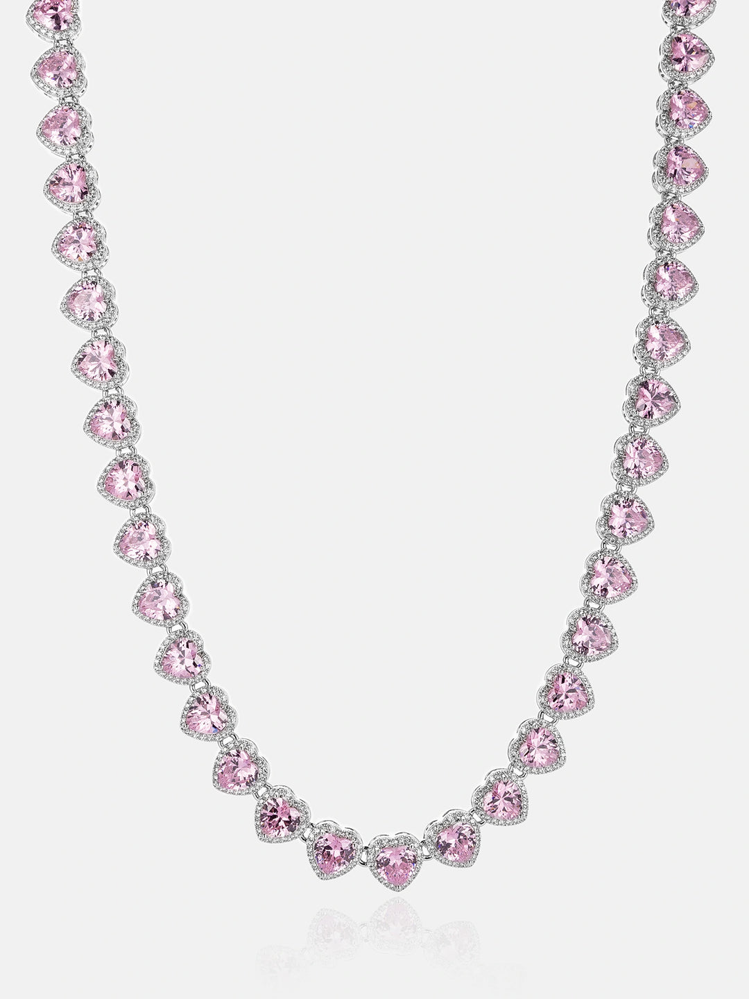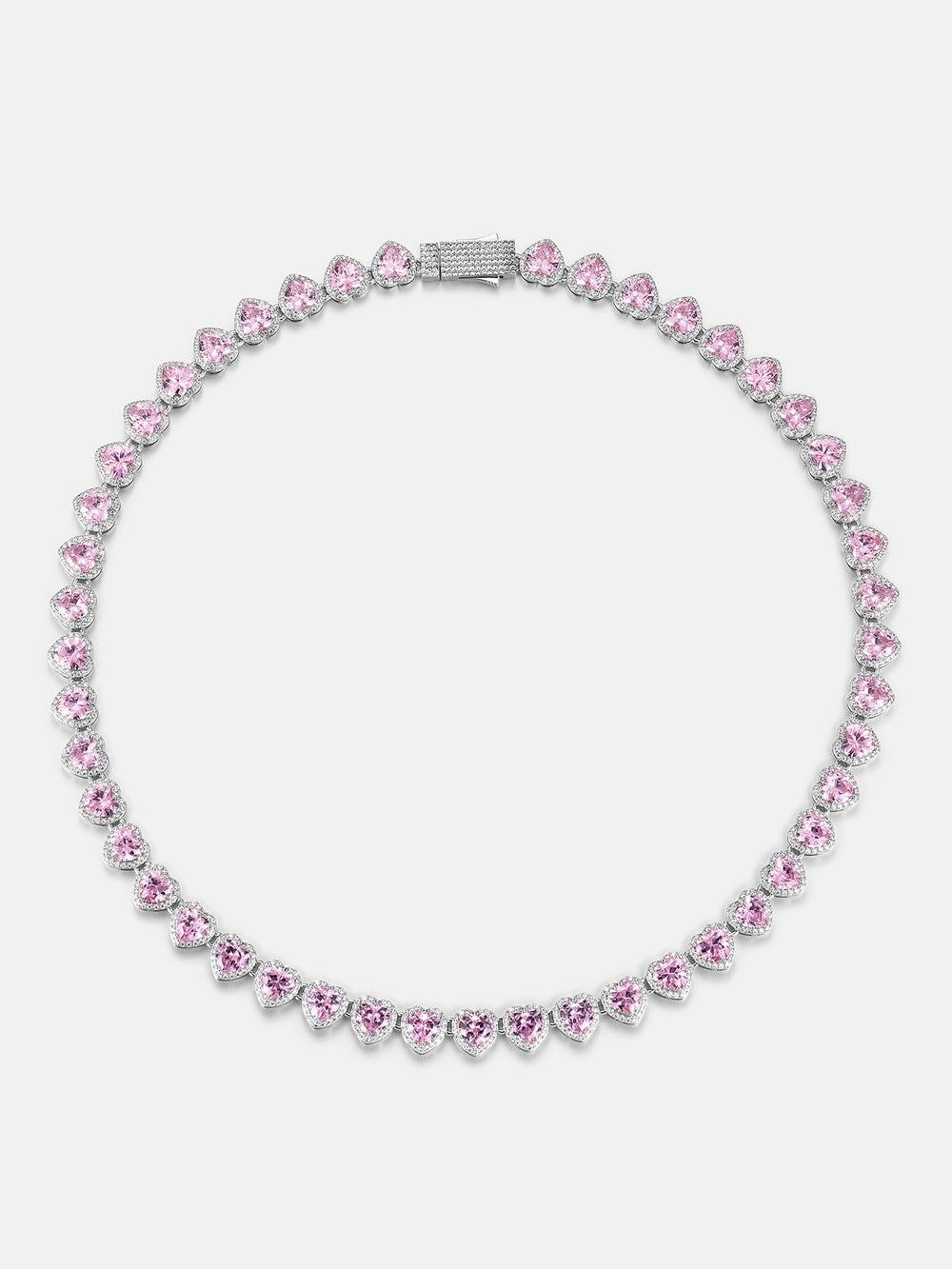 10mm Pink Gemstone & White Moissanite Heart Necklace