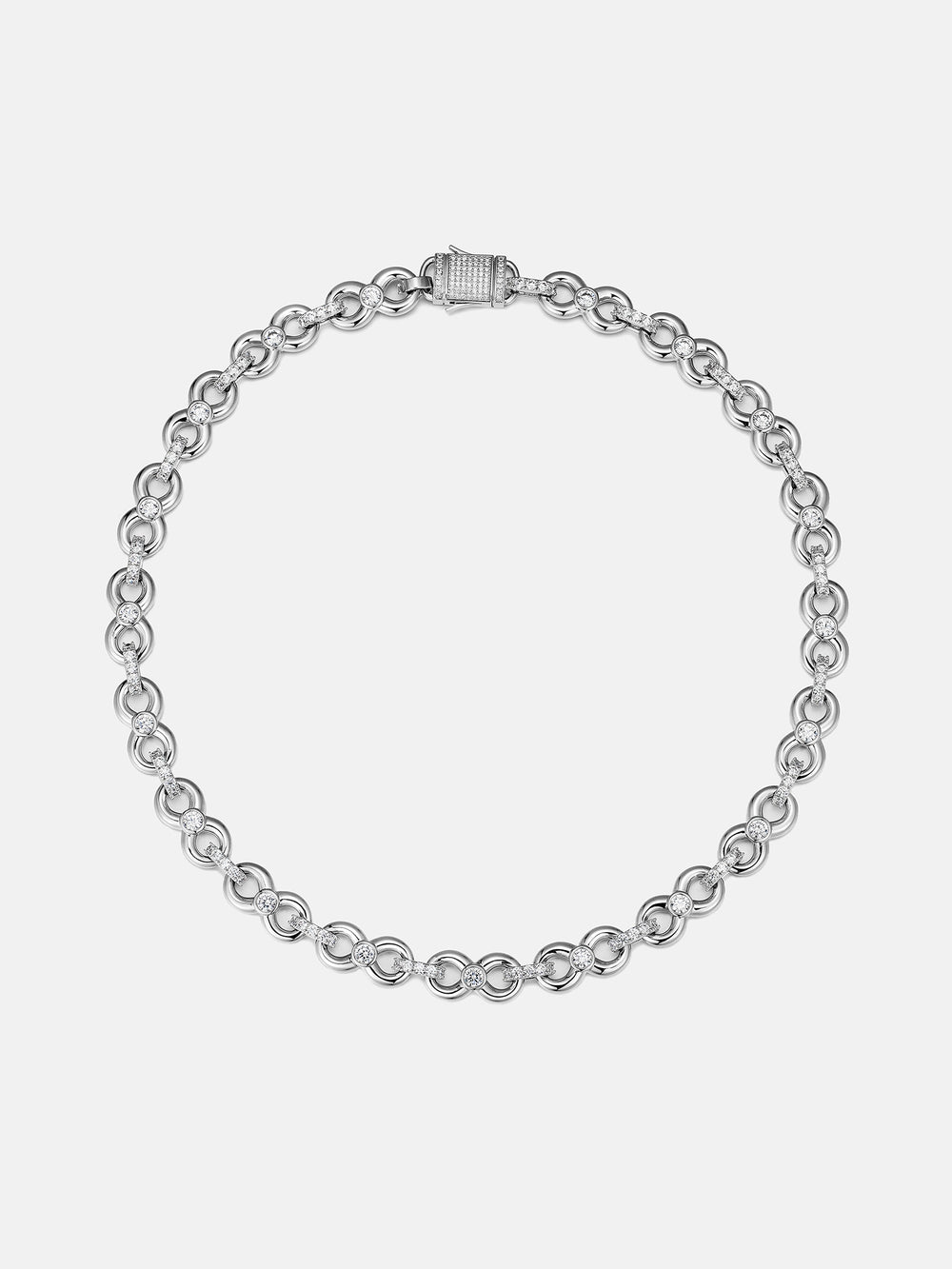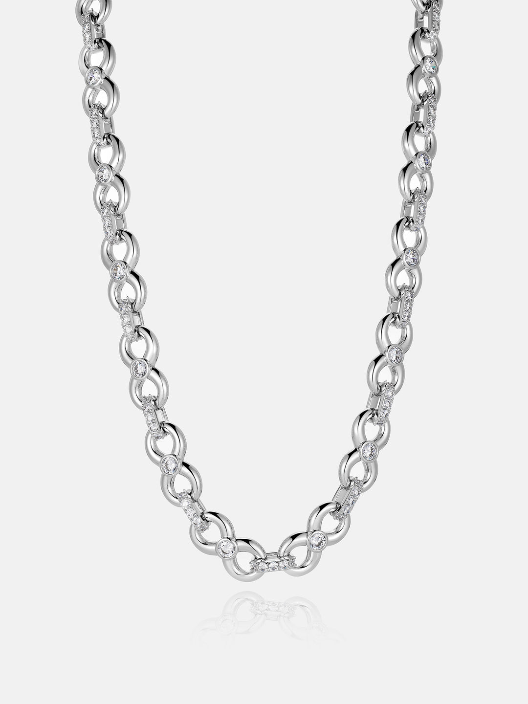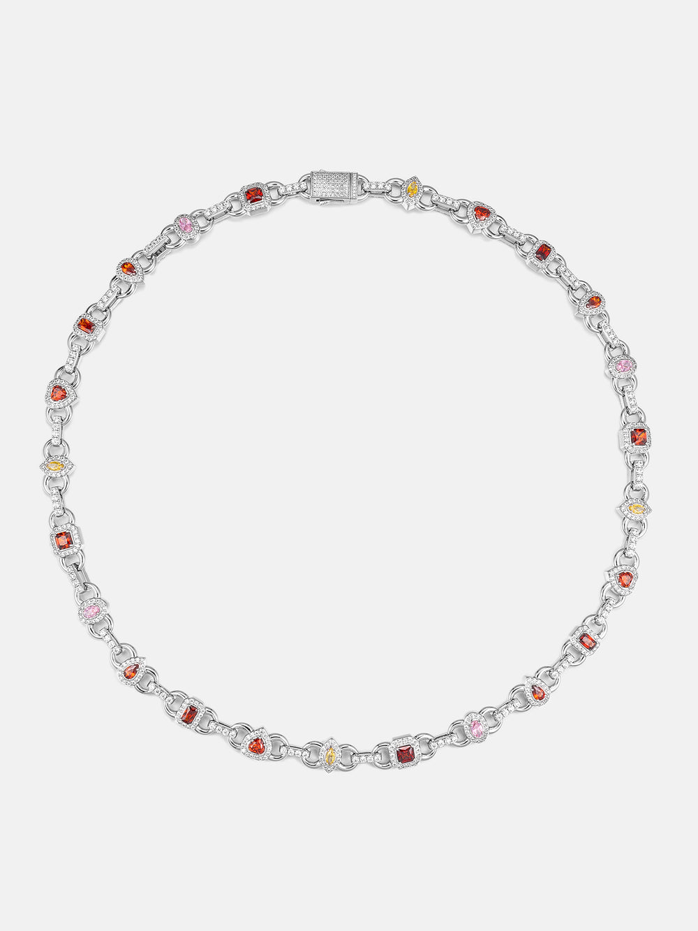 OBJ S925 Moissanite Multi Gemstone Chain In White Gold
