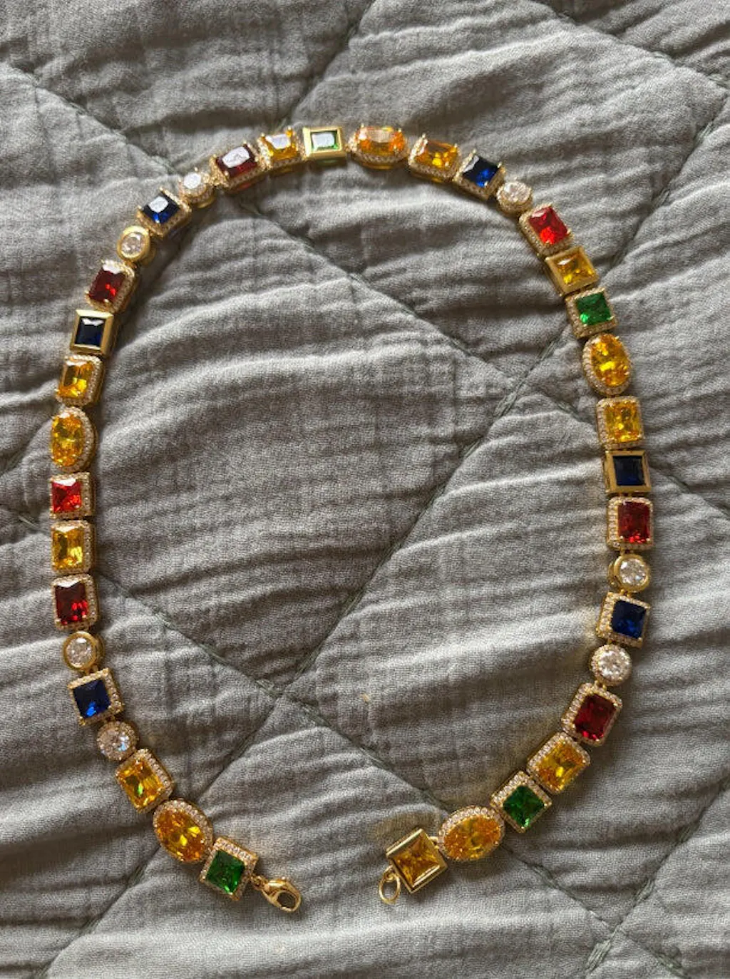 OBJ S925 Moissanite Multi Gemstone Chain In Yellow Gold